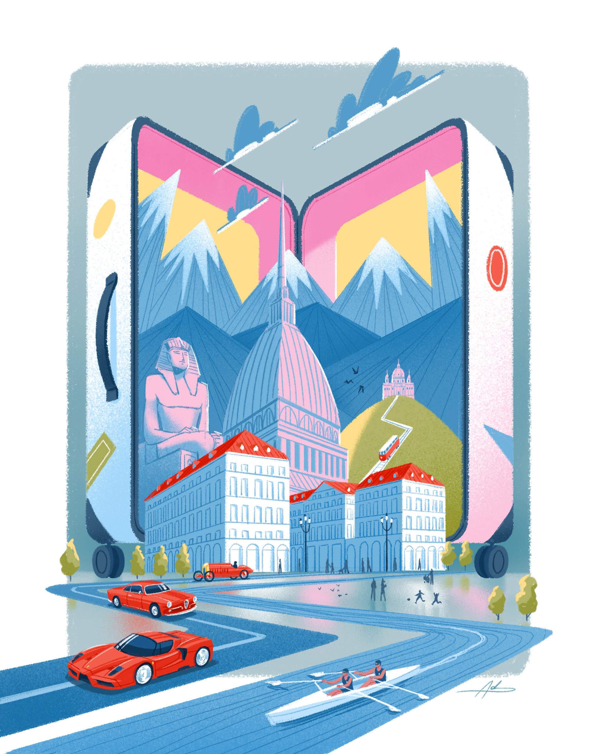 Alpitour mi ha chiesto di reinventare, attraverso il mio linguaggio visivo, le città e i luoghi che ospitano le sedi storiche dell'azienda.